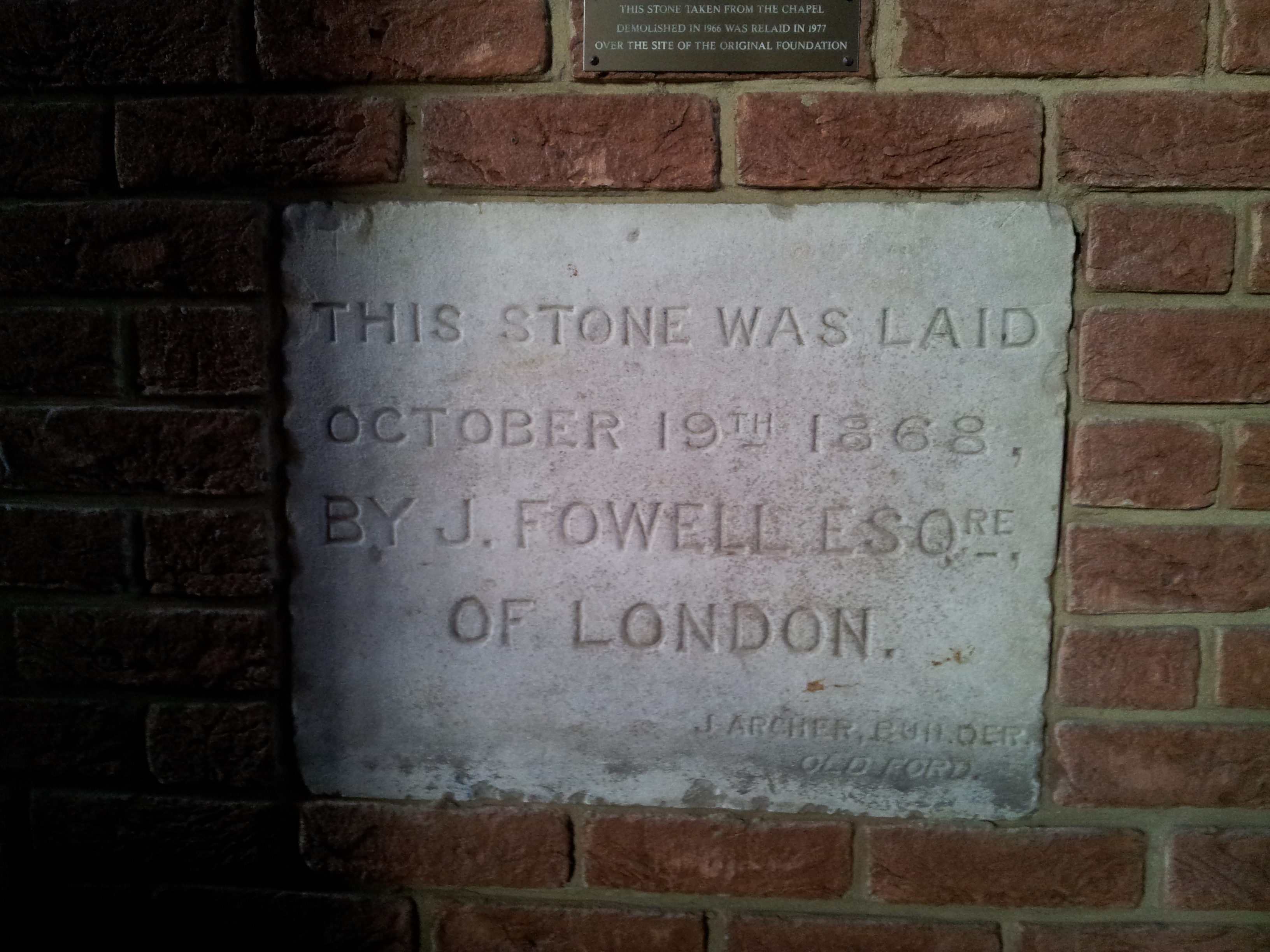 The First Primitive Methodist Chapel in Goffs Oak was built in 1868, and was big enough to seat 100 people. Its foundation stone simply said "This Stone Was Laid October 19th, 1868 By J. Fowl, Esq., of London". It is not known how much the building cost, but the money was raised "through zealous endeavour by a small company of faithful and determined people". That is, the original Chapel was bought and paid for by the local congregation. It was built in Common Road (as Newgatestreet Road was known at that time). It drew packed congregations, and became a centre of warm fellowship and simple worship. The building itself was described as being of 'unpretentious brick and slate', and the interior as 'severely functional'. What else would one expect of the 'Primitive Methodists' from which we evolved?